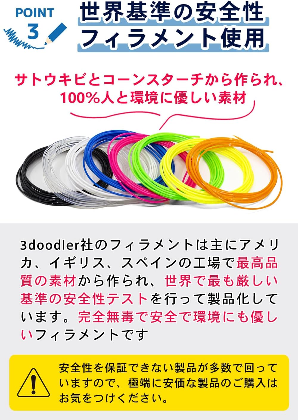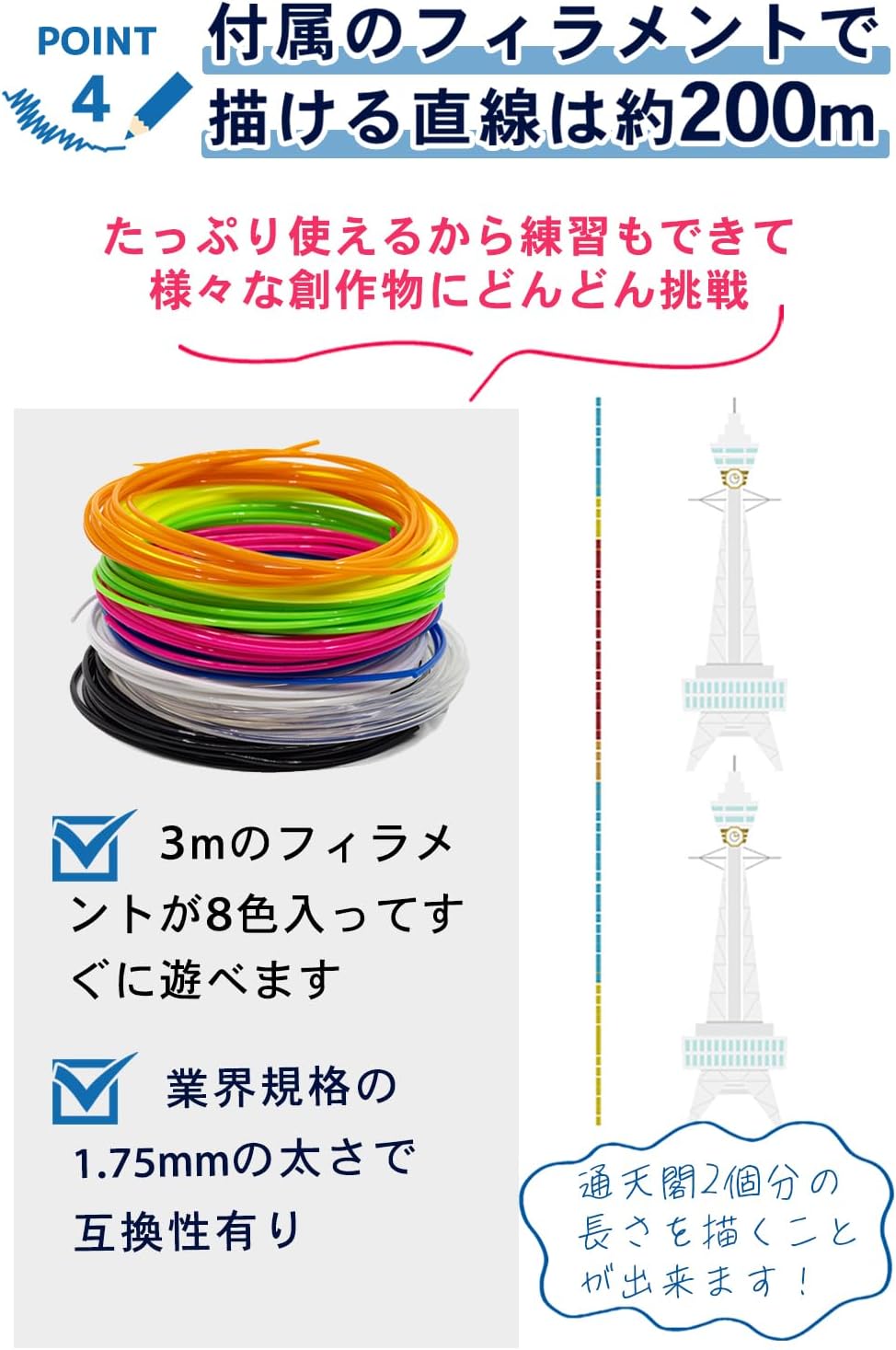 娘のクリスマスプレゼントとして購入。最初からカラフルなフィラメントがあり、とても喜んでいます。1年保証もあり安心です。